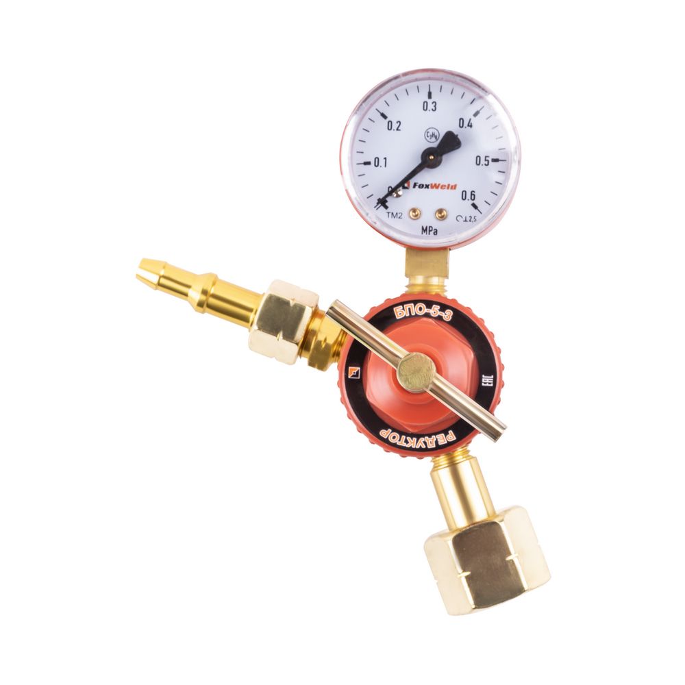 Редуктор пропановый БПО-5-3 производства Foxweld предназначен для регулировки подачи пропана на выходе из баллона, снижает и выравнивает давление газа до рабочего уровня, поддерживает его заданный расход при газопламенной обработке. Контроль над давлением осуществляется с помощью манометра давления на выходе. Алюминиевый корпус надежно крепится на баллон, не допуская протечки газа на любом этапе. Газовый пропановый редуктор необходим при проведении сварочных работ, резке и пайке металлов, газовом напылении.
